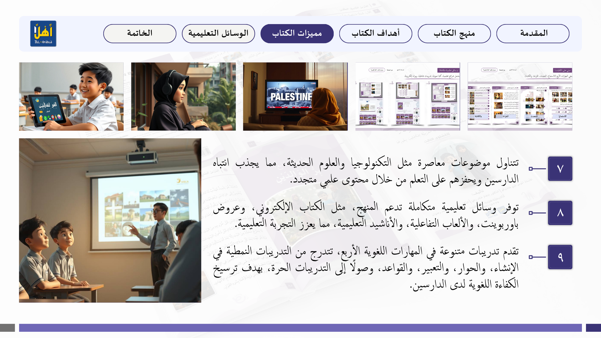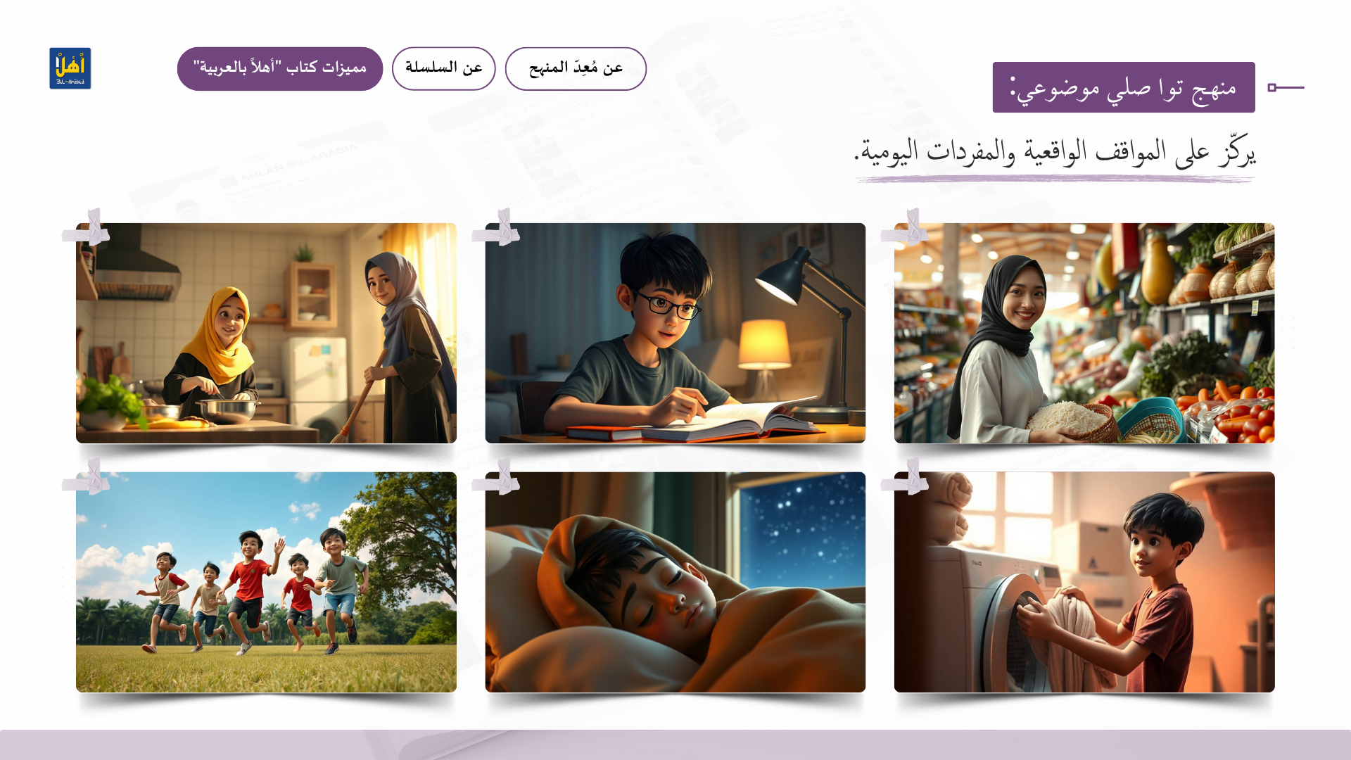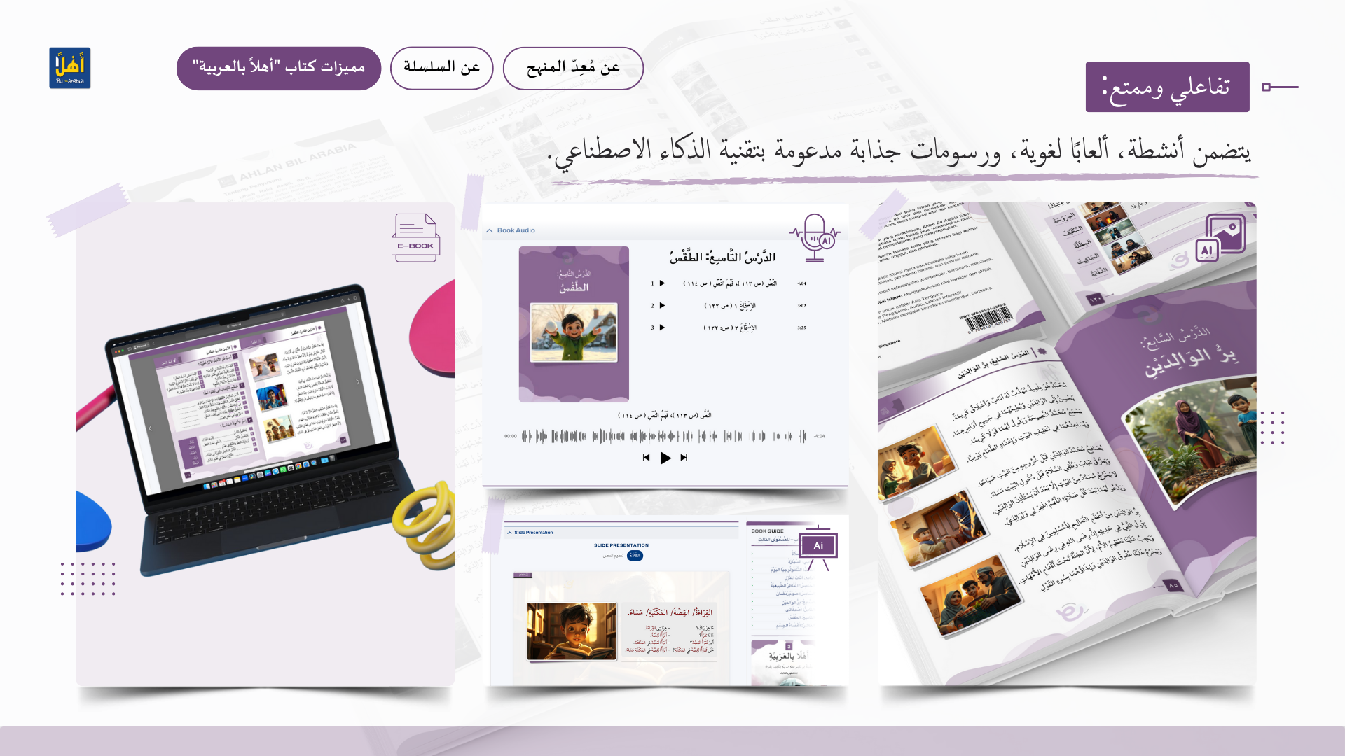 التعريف بمنهج سلسلة ” أهلا بالعربية”، وأهدافا، ومميزاتها، ووسائلها التعليمية مفصلا